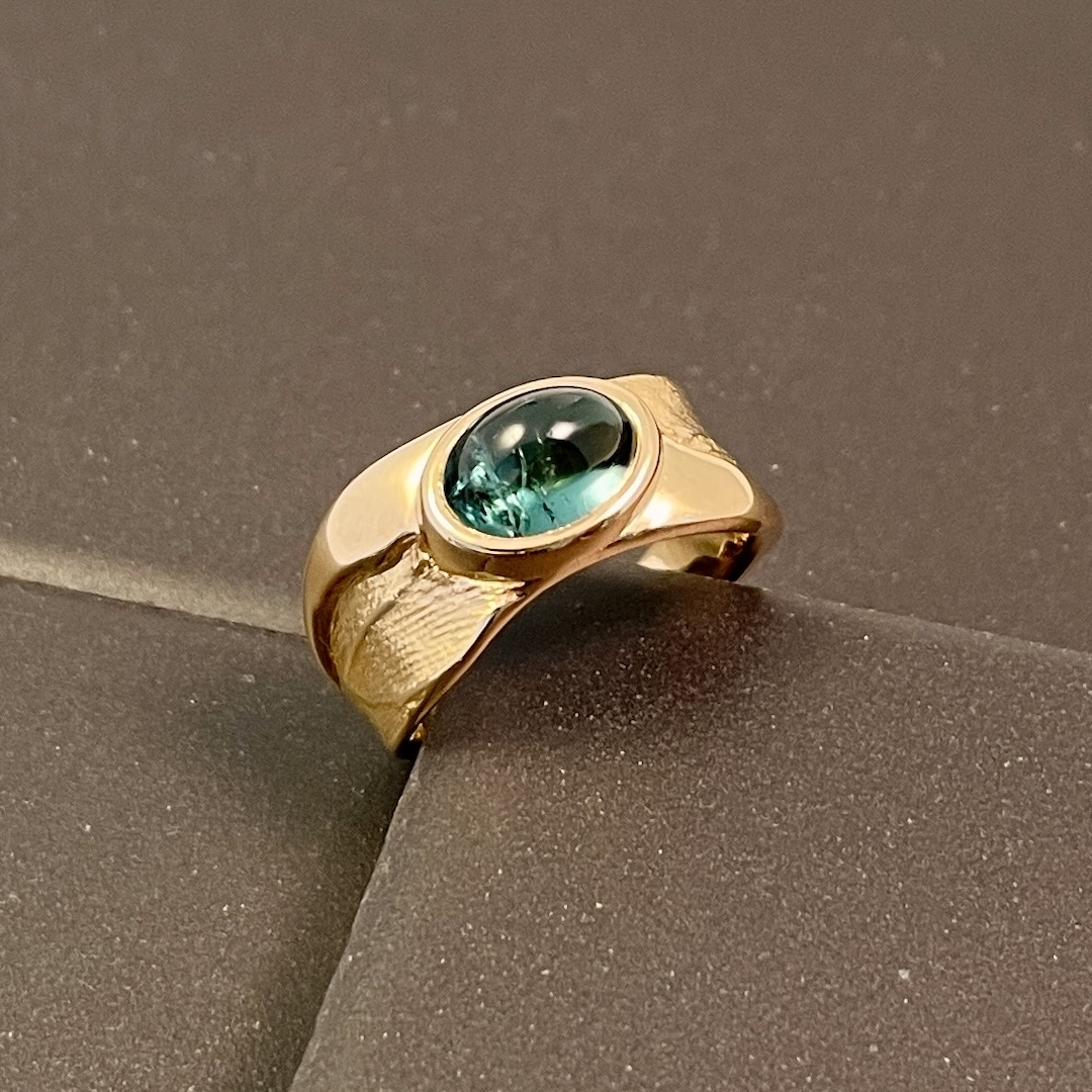 Bague Unic en or jaune 750 avec une tourmaline cabochon oval.